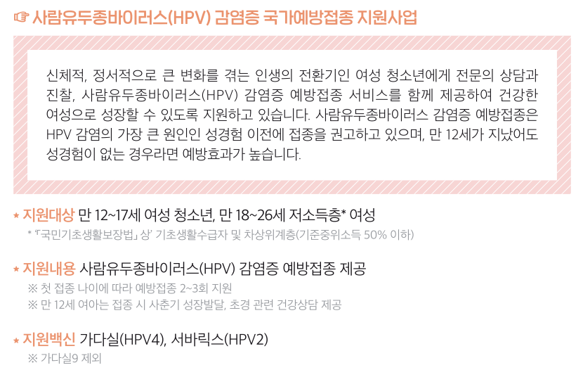 μ‚¬λžŒμœ λ‘μ’…λ°”μ΄λŸ¬μŠ€ HIV κ΅­κ°€μ˜ˆλ°©μ ‘μ’… 지원사업 λŒ€μƒμžκ°€ 만 12~17μ„Έ μ—¬μ„± μ²­μ†Œλ…„πŸ‘§πŸ» (2005.1.1. ~ 2011.12.31. μΆœμƒμž) 만 18~26μ„Έ μ €μ†Œλ“μΈ΅ μ—¬μ„±πŸ‘ΈπŸ» (1996.1.1. ~ 2004.12.31. μΆœμƒμž) - μ§€μ›λŒ€μƒμ€ μ£Όλ―Όλ“±