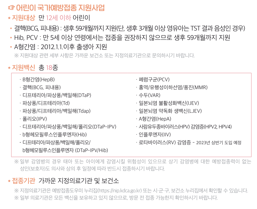 2023λ…„ 어린이 κ΅­κ°€ ν•„μˆ˜ μ˜ˆλ°©μ ‘μ’…μ— κ΄€ν•œ λͺ¨λ“  것